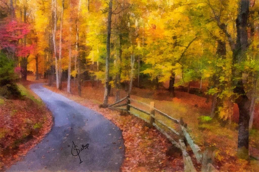 For example, I had this vision of creating a fall color scene with a leading road. Waiting for the right season, scouting the locations on google street view & then in person, checking out the weather and being there at the right time – got me this.